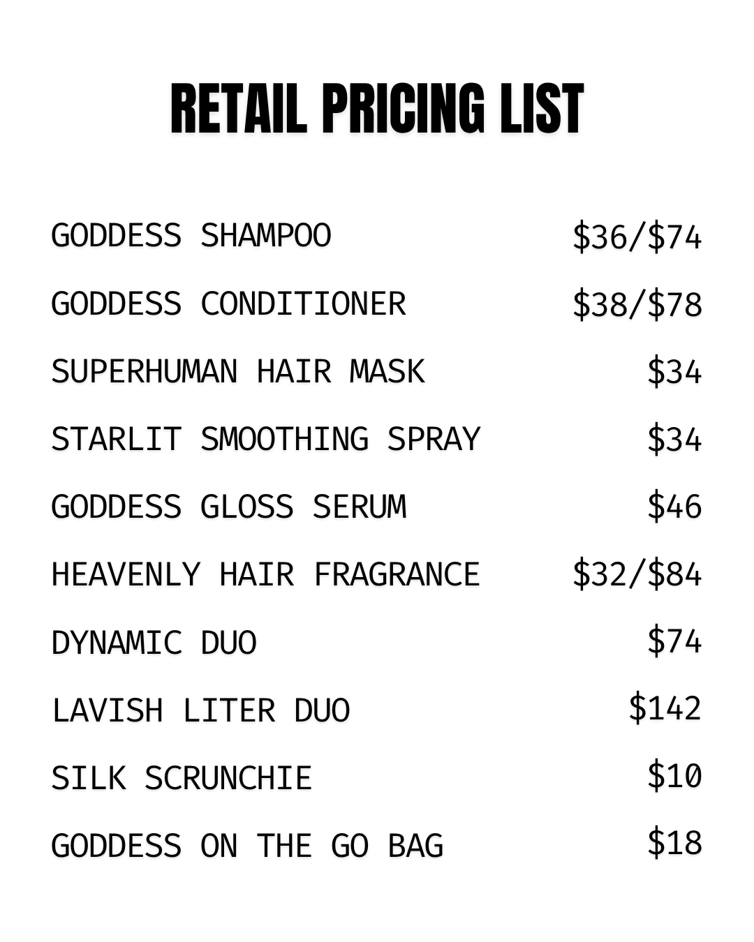 The Suggested Retail Pricing Sheet helps salons price HERA Goddess Hair Care for retail, keeping profits high and the client experience luxe. It’s your go-to guide for maximizing sales while keeping our salon-exclusive line premium. 💜✨